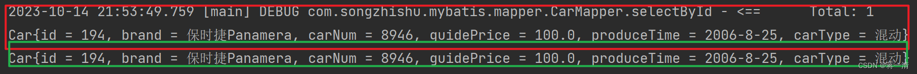 - Car{id=87, carNum='1234', brand='丰田霸道', guidePrice=50.5, produceTime='2020-10-11', carType='燃油车'}],