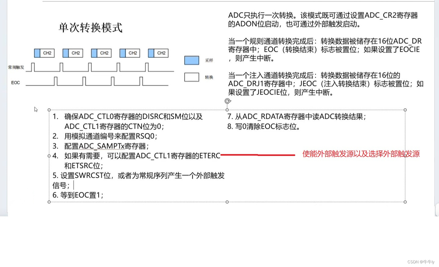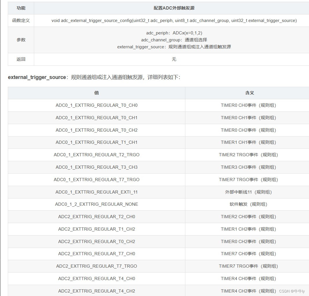 - adc_external_trigger_config(ADC0, ADC_REGULAR_CHANNEL, ENABLE); // 使能外部触发