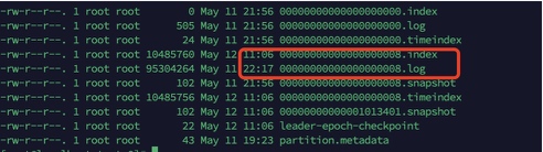 生产者发送到kafka的数据最终是存在log中,每个log都是由一个.log和.index文件组成。数据进来时,将数据追加到.log,将数据在.log中的索引追加到.index。当.log文件达到一定的大小后,kafka会新建一个.log和.index存储之后的数据,文件名字以新的索引起始点命名。