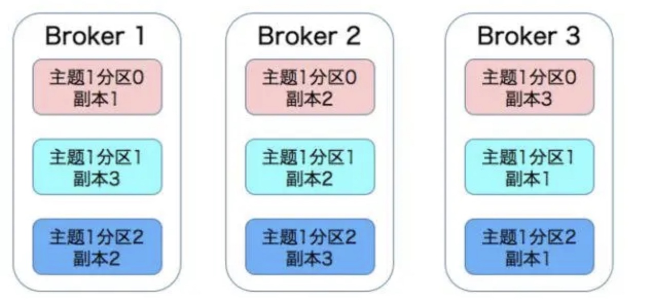 每个分区由多个副本构成,副本的目的就是冗余备份,当某个Broker上的分区数据丢失时,依然可以保障数据可用。因为在其他的Broker上的副本是可用的。