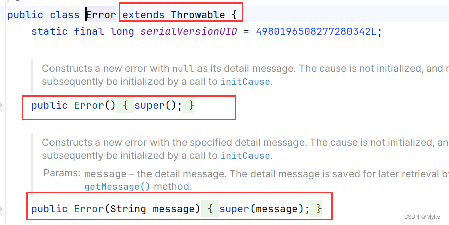 是异常体系的顶层类,其派生出两个重要的子类, Error 和 Exception