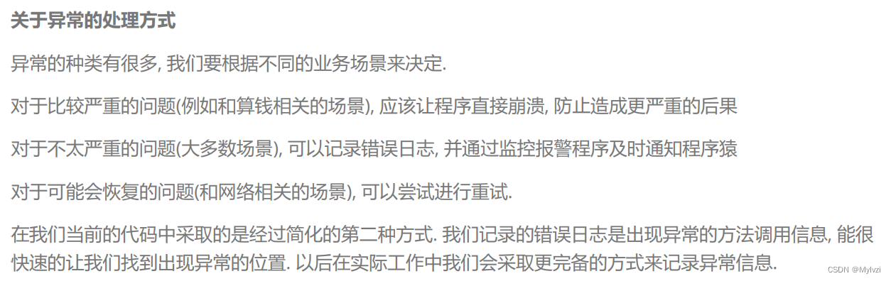 思考:那我们该如何记录并处理异常呢?什么时间去处理异常呢?