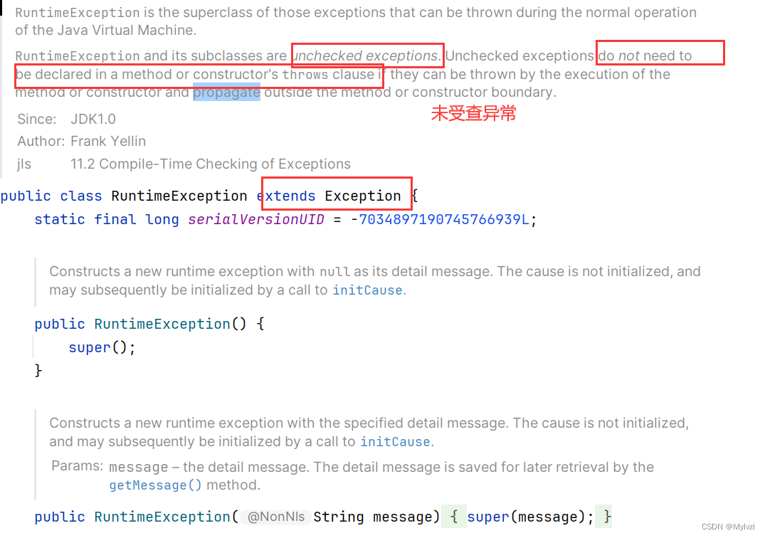 继承RunTimeException的类是非受查异常,不需要添加声明