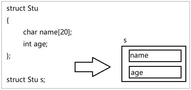 - strcpy(s.name, "zhangsan");//使用.访问name成员