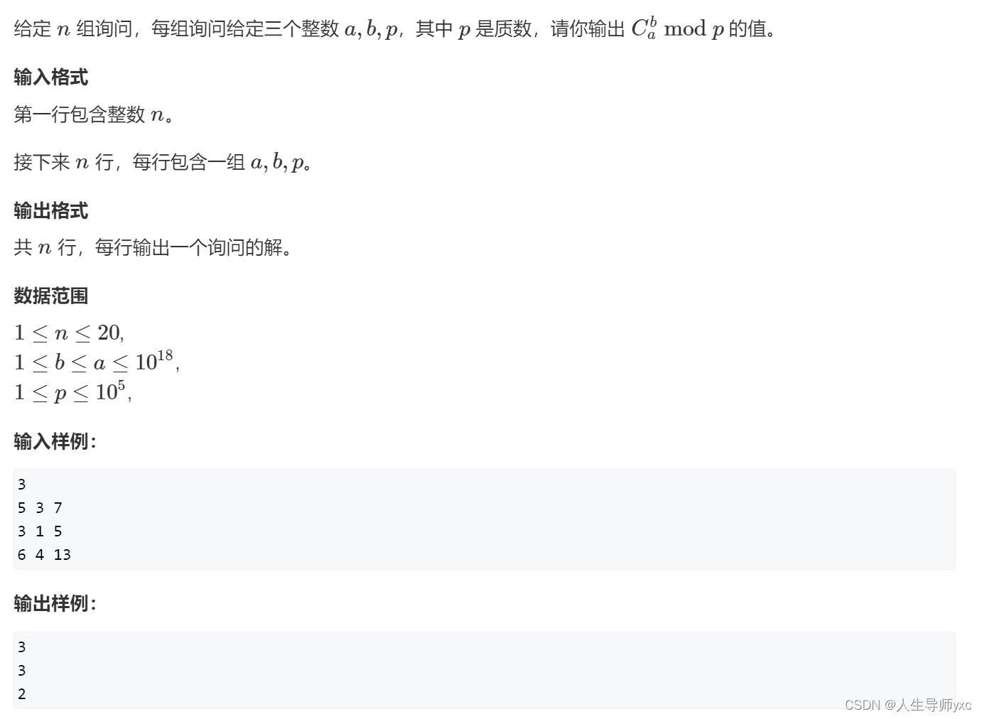 - int C(int a, int b, int p)