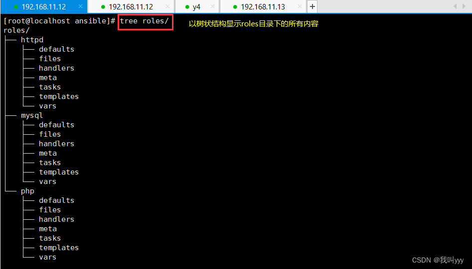 - (3)在 roles 目录中分别创建以各角色名称命令的目录,如 httpd、mysql