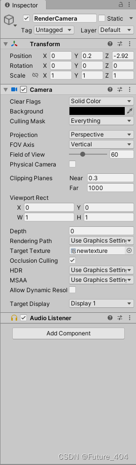 一、创建新的相机,创建新的RenderTexture,并把RenderTexture赋值给该相机,如下