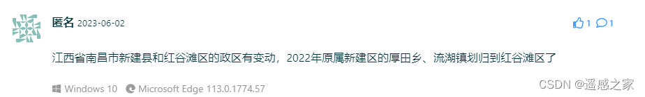 2021年12月24日,经江西省政府批准,将南昌市新建区厚田乡划归红谷滩区管辖。 2022年8月6日,南昌市新建区流湖镇划归红谷滩区。原版本的2023年初县级数据中,红谷滩区缺少厚田乡,已修正。