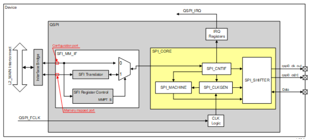 如下图所示为QSPI 控制器的内部组成关系,从中我们可以得出如下几个关键结论: