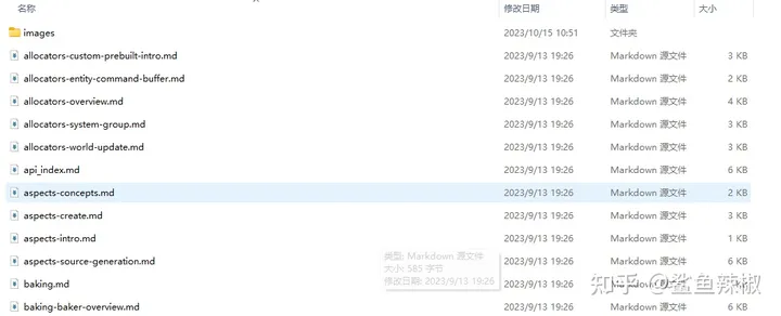 安装好entities包后,在Pacakges的entities的文件夹下可以看到有一个Document~的文件夹,它是当前DOTS版本的文档,我们可以从里面拷贝出来,作为离线文档来看。平常在手机上也可以看。