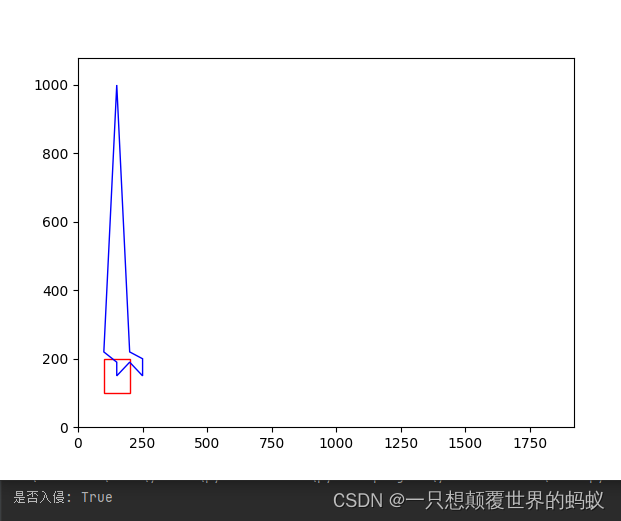 - intrusion_area_hexagon = [(150, 150), (200, 190), (250, 150), (250, 200), (200, 220), (150, 1000), (100, 220), (150, 190)] # 六边形区域坐标