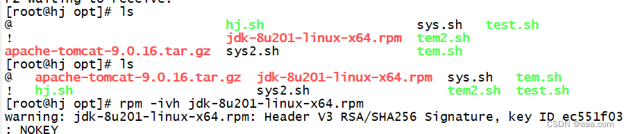- [root@hj opt]# ls