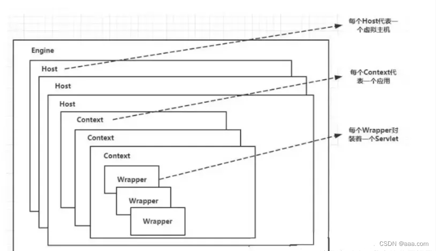 Engine、Host、Context 和 Wrapper,这四个容器之间属于层层递进的父子关系。