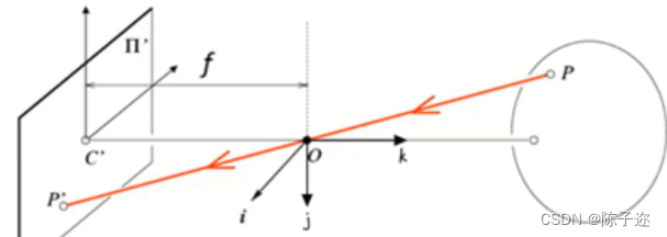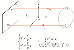 实际处理时都是使用虚拟像平面。虚拟像平面与像平面坐标系相比,, 轴反向。