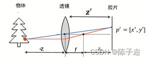 在凸透镜成像中,我们只关心透镜和胶片之间的距离,其中。
