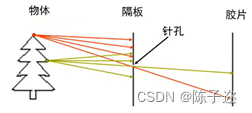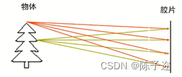 如果将胶片直接放置在物体前方,物体的每一个点都会发散出很多束光线,胶片上的每一个点都会叠加物体不同位置发出的光线,这样没有办法在胶片上清晰地成像。