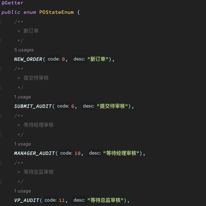 养成良好的习惯,在用枚举定义的变量,拉一条引用指向枚举,方便其他开发人员阅读。