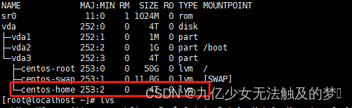 resize2fs /dev/centos/root