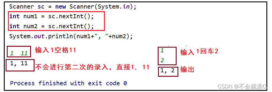 除了nextLine 其他遇到空格 回车 制表位(tab键)会停止录入,其他没有读取的内容会放到缓冲区,下一次读取会读缓冲区里面的第一个非空格 回车 制表位 字符