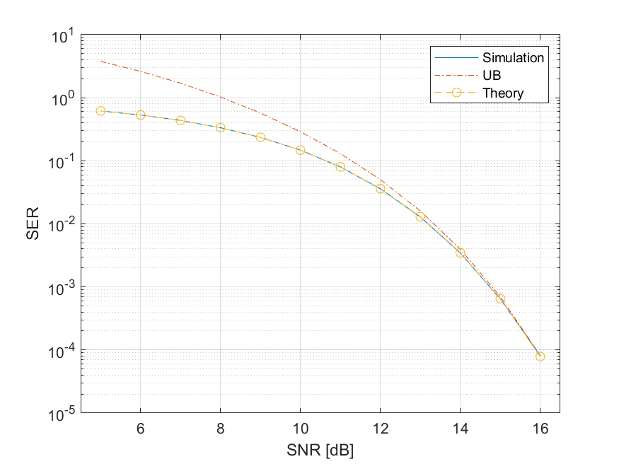 - h = semilogy(SNRdB,ser,SNRdB,ser_ub,SNRdB,p_e);