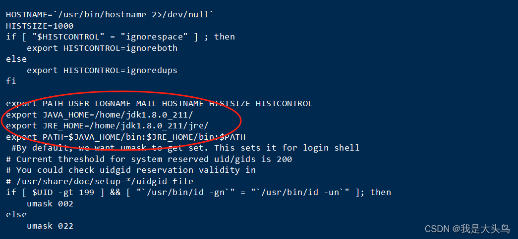 export JAVA_HOME=/home/jdk1.8.0_211/export JRE_HOME=/home/jdk1.8.0_211/jre/export PATH=$JAVA_HOME/bin:$JRE_HOME/bin:$PATH