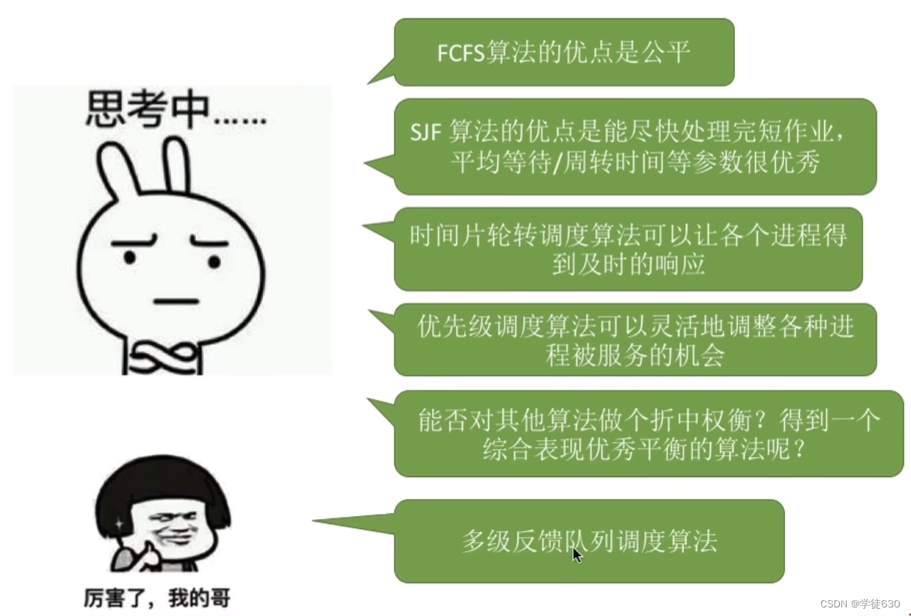 可灵活地调整对各类进程的偏好程度,比如CPU密集型进程、I/O密集型进程(拓展:可以将因I/O而阻塞的进程重新放回原队列,这样I/O型进程就可以保持较高优先级)