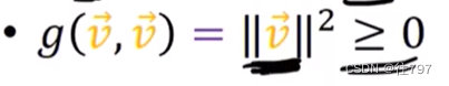 2. 度量张量测量向量长度时,我们将相同的向量放入两次,我们总是得到>=0的结果,