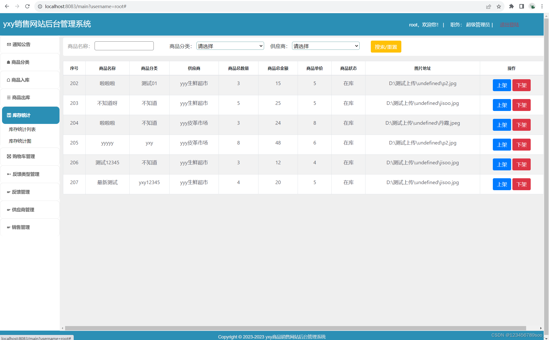 前台显示的商品数据,均来自库存统计。库存统计控制商品上架、下架。