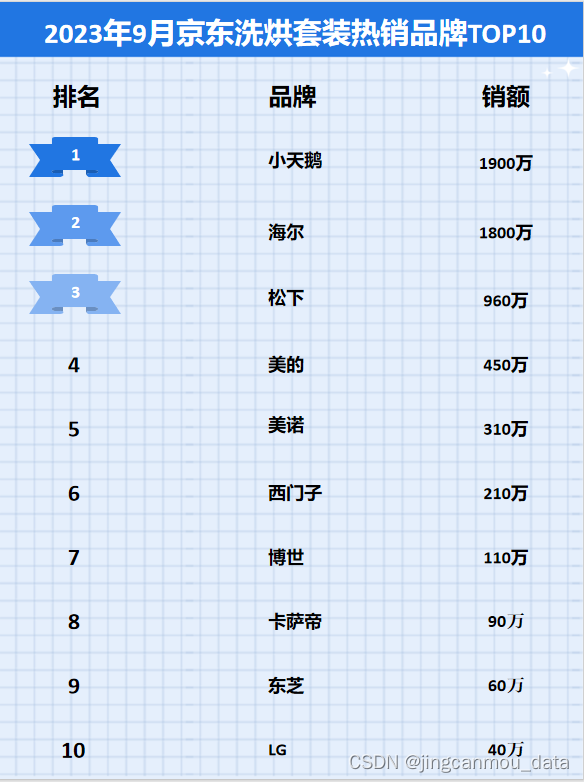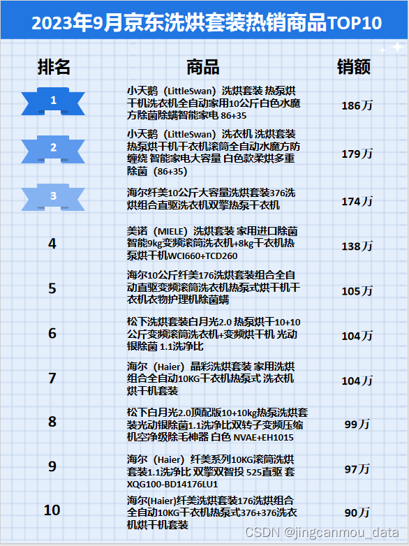 鲸参谋监测的京东平台9月份洗烘套装市场销售数据已出炉!