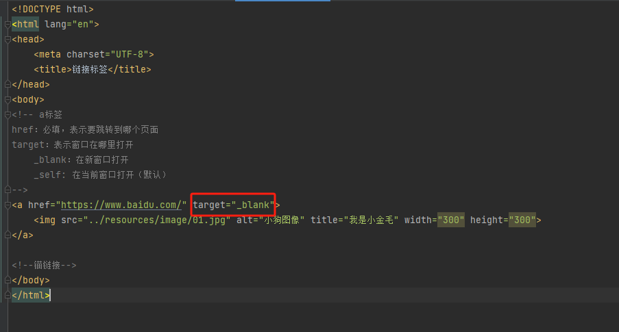 例如:当超链接的a标签中有target的属性,并且属性值为_blank时