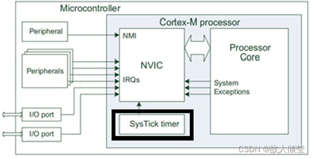 因为SysTick是属于内核的一部分,其被捆绑在NVIC中,用于产生SYSTICK异常。