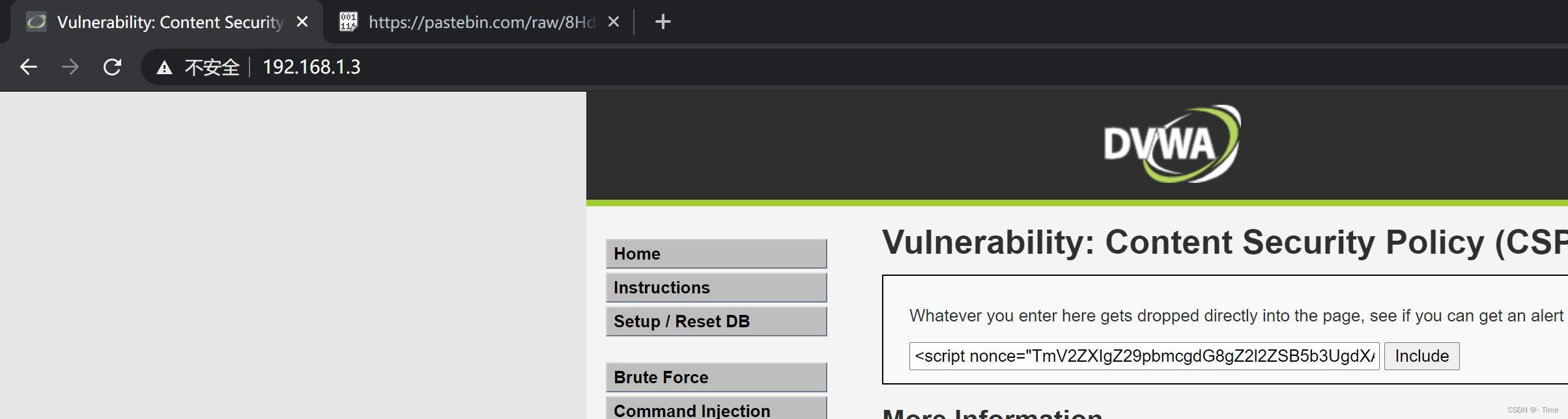 举例说明:我们的框架iframe访问的地址是http://127.0.0.1/dvwa/vulnerabilities/csrf,位于服务器127.0.0.1(域名A)上,而我们的攻击页面位于黑客服务器另一个ip地址(域名B)上.