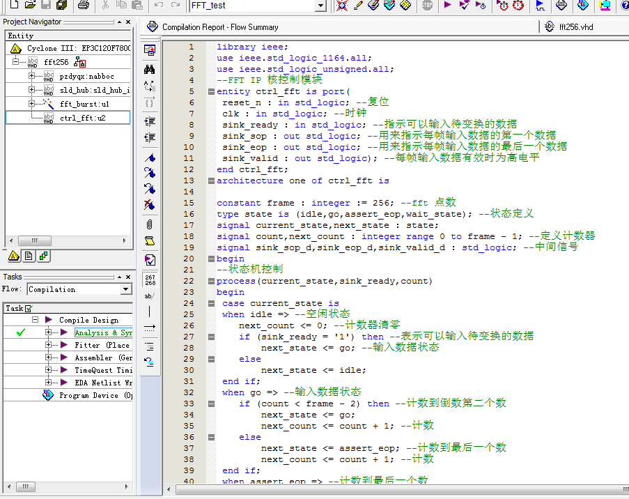 代码功能:使用VHDL实现256点FFT,调用Quartus IP核实现傅里叶变换