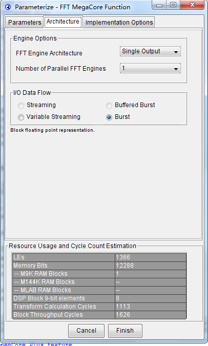 FFT IP 核设置