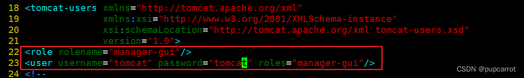 - <user username="tomcat" password="tomcat" roles="manager-gui"/>