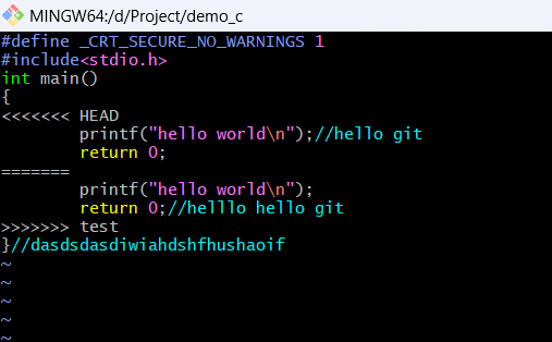 - >>>>>>> test 表示与主线产生冲突的分支