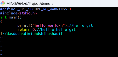 这里我删除了三条分界线,第一部分的return和第二部分的printf,然后esc,wq退出即可。