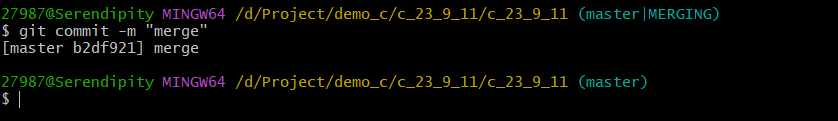 注意:下一行代码()中提示werging说明正在合并中