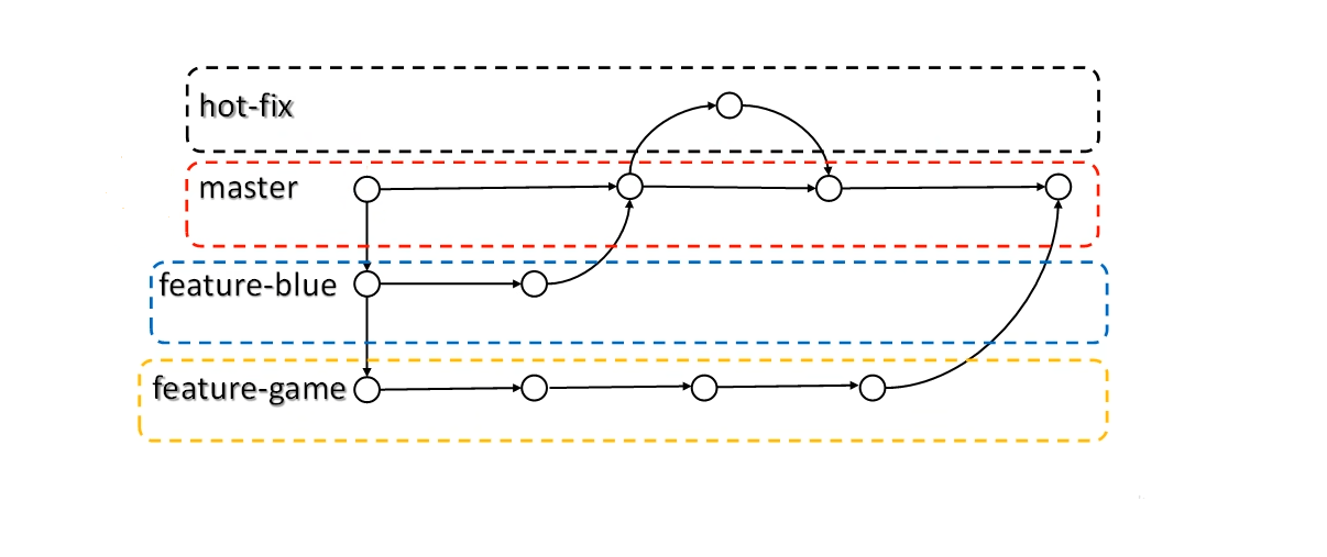 总结:master、hot-fix其实都是指向具体版本记录的指针。当前所在的分支,其实是由HEAD决定的。所以创建分支的本质就是多创建一个指针。