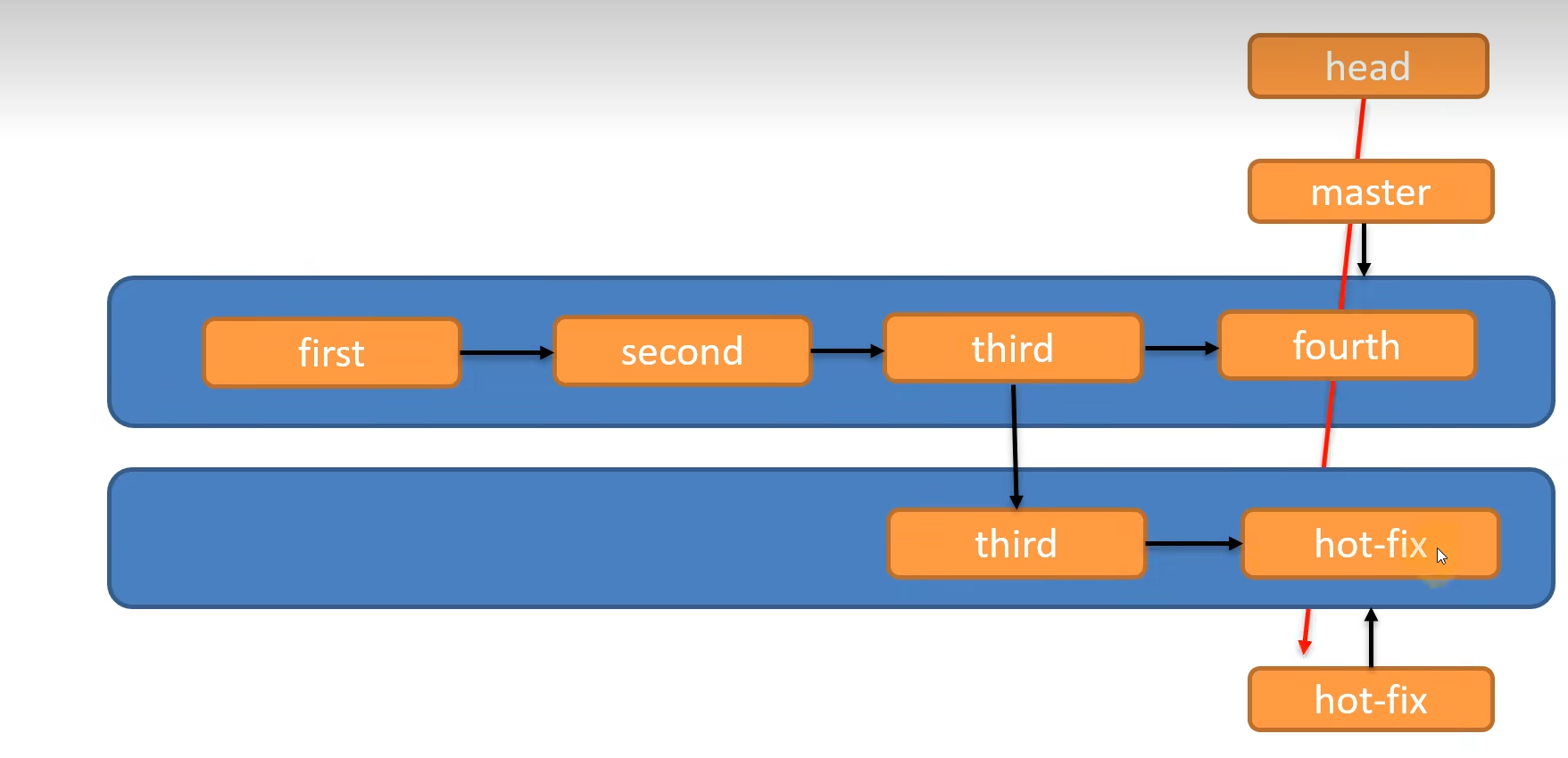 HEAD如果指向master,那么我们就在master分支上;如果指向hot-fix,我们就在hot-fix分支上。(在.git里面找到HEAD文件可以查看当前指针所指向分支)