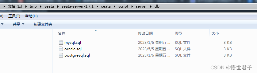 建表 sql 在 seata-server-1.7.1 的 seata-server-1.7.1\seata\script\server\db 目录下