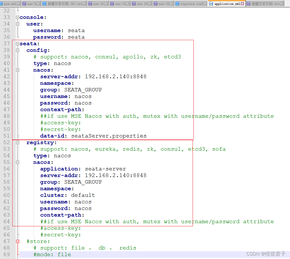 配置文件是 registry.conf 和 file.conf,这个是seata 服务端早期的配置方式,没有1.7.1的application.yml 文件方便