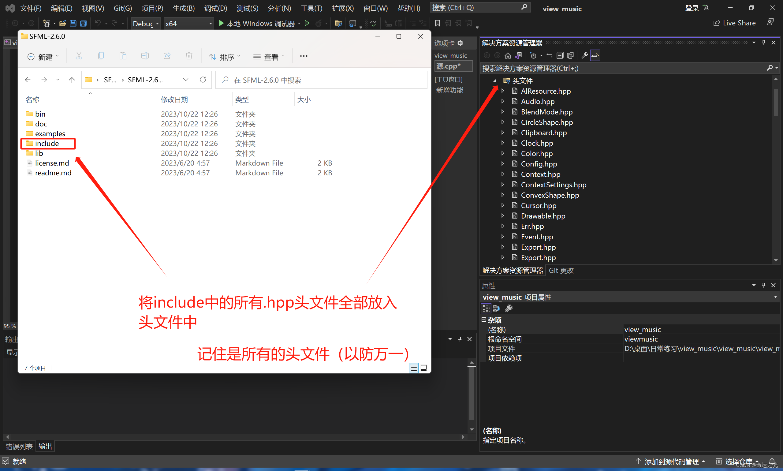 要将你的 SFML DLL 文件添加到 Visual Studio 2022 项目中,可以按照以下步骤进行操作: