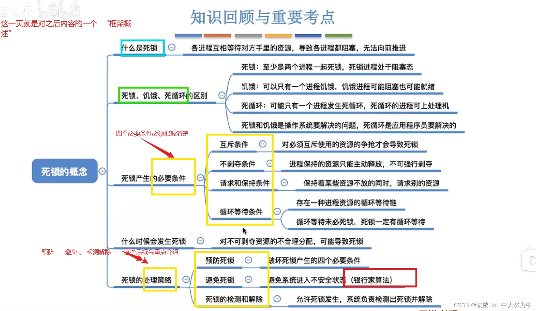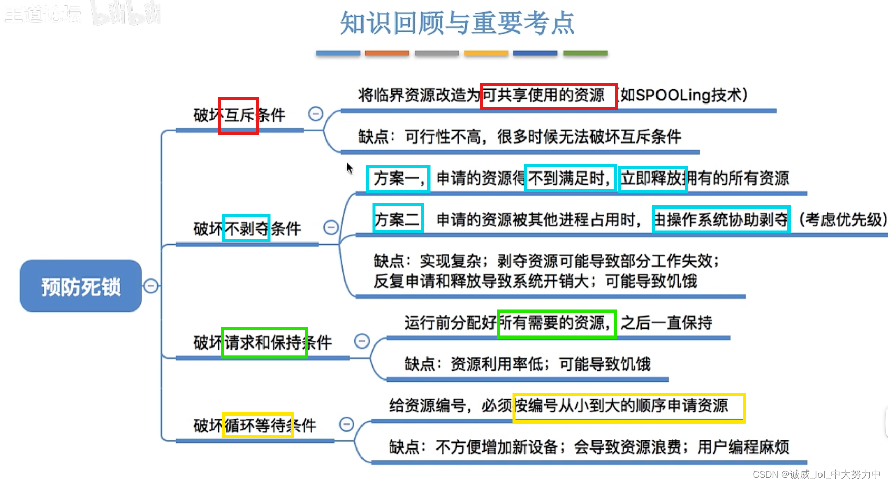 2.“预防死锁”——破坏死锁的4个必要条件:
