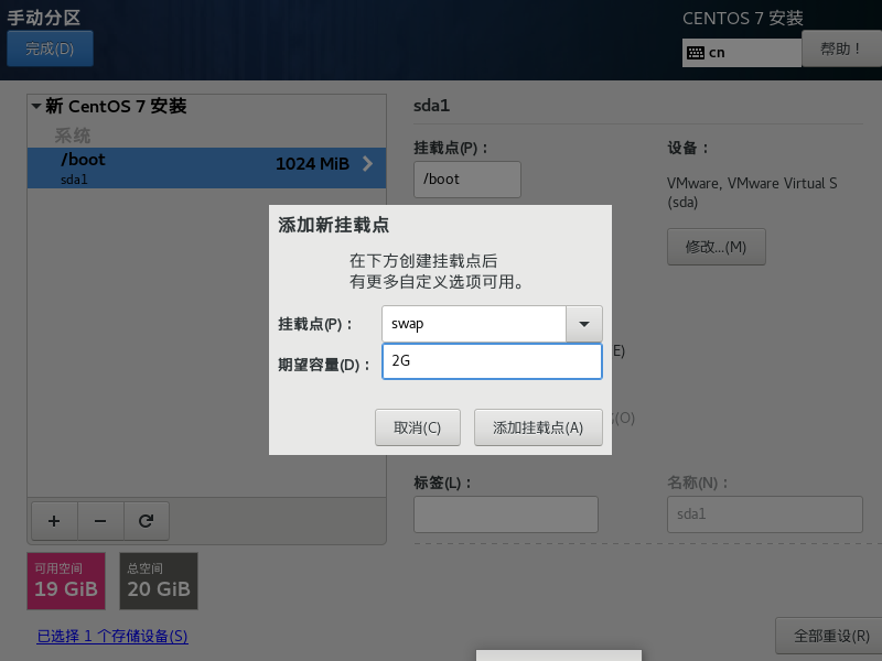 目前只是给Centos7.6划分了磁盘空间,系统还未安装