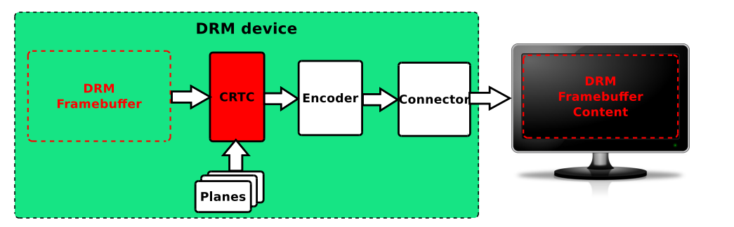 在DRM框架中,CRTC从Framebuffer中读取待显示的图像,并按照响应的格式输出给encoder,其主要承担的作用为: