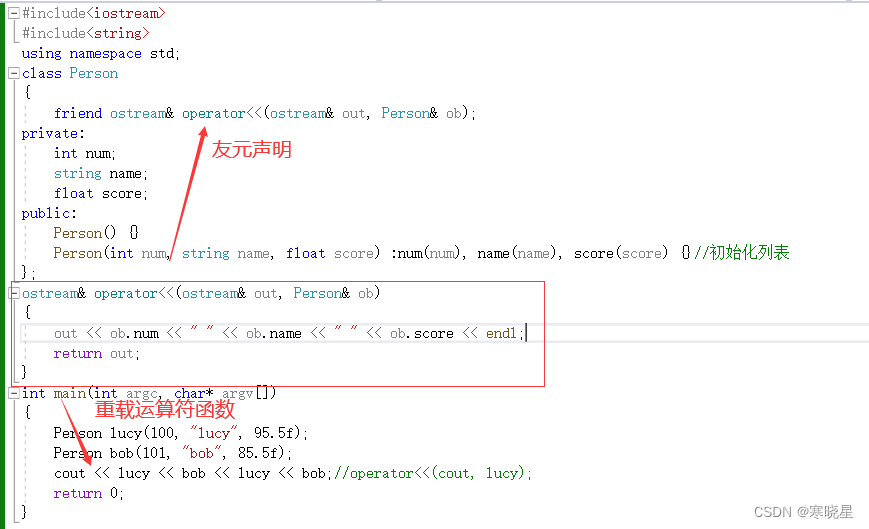 - Person(int num, string name, float score) :num(num), name(name), score(score) {}//初始化列表