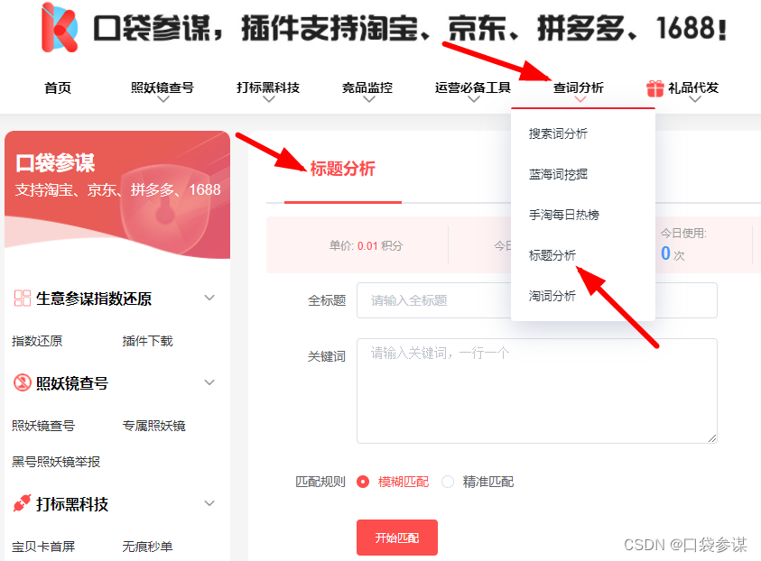 这个时候我们需要标题分析功能,去帮助我们分析标题中的关键词是否与我们的宝贝匹配。