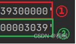 十进制的12345转换为十六进制是0x00003039,其在内存中的格式如图1①所示。