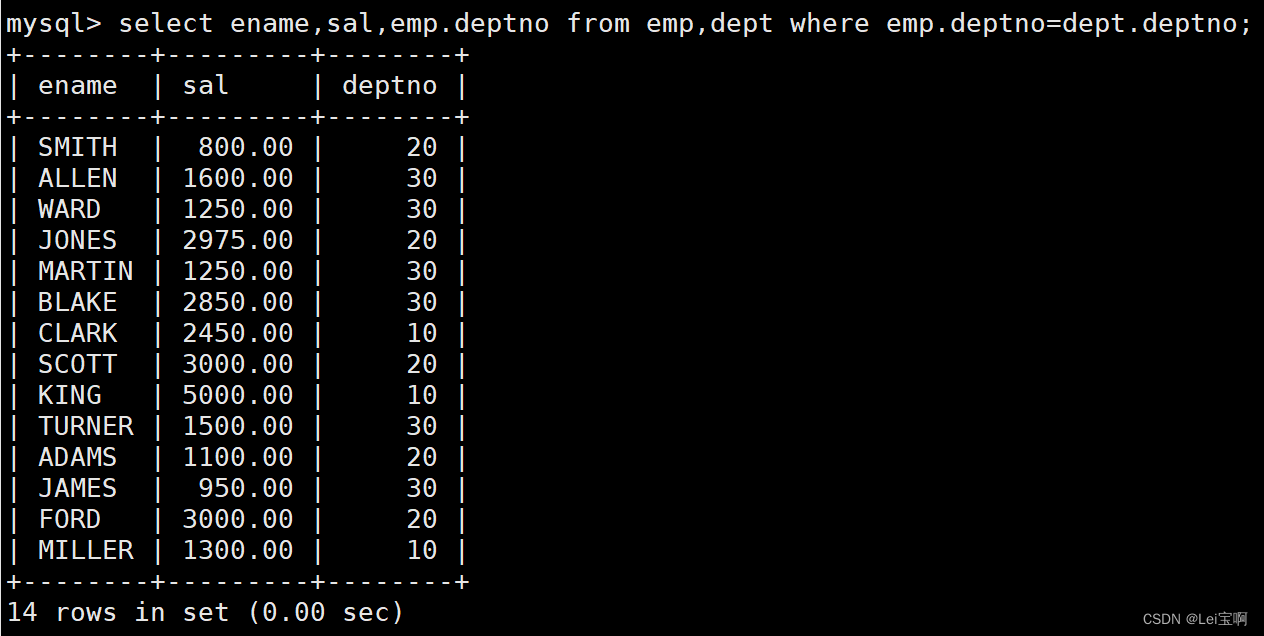实际开发中往往数据来自不同的表,所以需要多表查询。本节我们用一个简单的公司管理系统,有三张表EMP,DEPT,SALGRADE来演示如何进行多表查询,也就是上面我们给出的表。